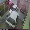 KIRIKKALE'de otopark girişinde yaya ile başka otomobile çarpan otomobil, park halindeki 2 aracın üzerine düştü. Kaza, güvenlik kamerasına yansıdı.