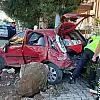 Isparta'da seyir halinde olan sürücü direksiyon hakimiyetini kaybederek park halindeki otomobilin üzerine uçtu.