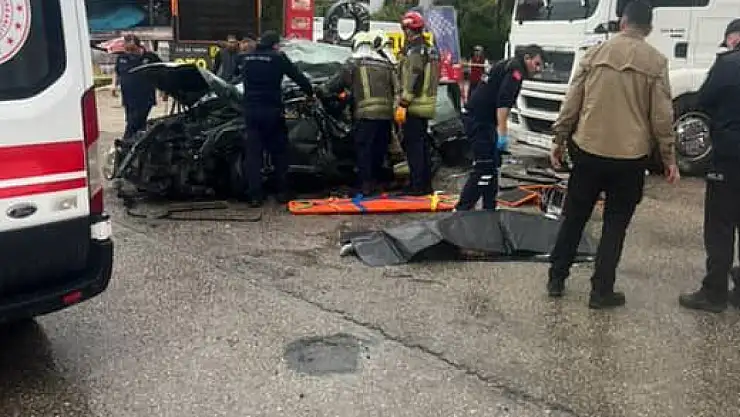 Sürücüsünün kontrolünden çıkan otomobilin park halindeki tankere çarptığı kazada 3 kişi hayatını kaybetti, 2 kişi de yaralandı.