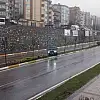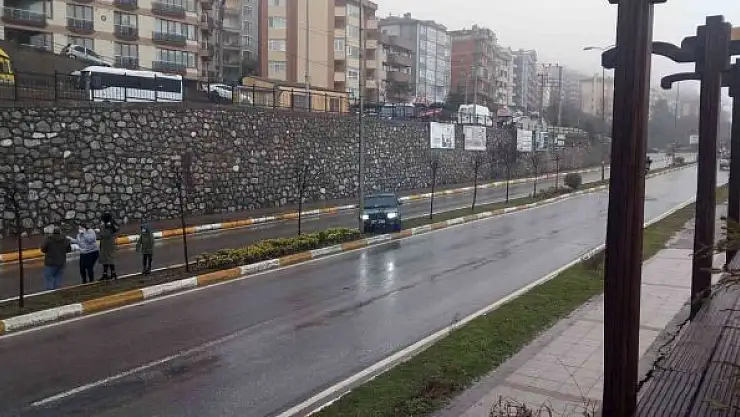 Zonguldak'ta aşırı yağış nedeniyle sürücüsünün kontrolünden çıkan otomobil refüje çıkarak elektrik direğine çarparak durabildi.