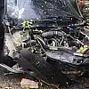 Bilecik'te seyir halinde kontrolden çıkan otomobil önce refüje çıktı, ardından ağaçlara çarparak durabildi.