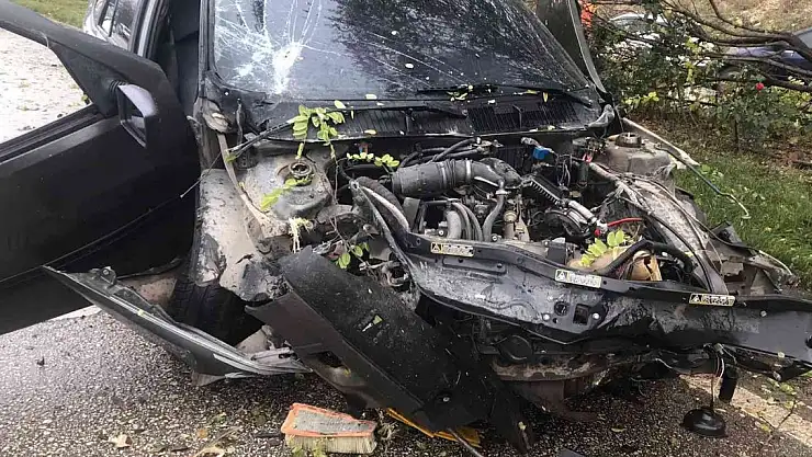 Bilecik'te seyir halinde kontrolden çıkan otomobil önce refüje çıktı, ardından ağaçlara çarparak durabildi. Kazada 1'i ağır 2 yaralandı.