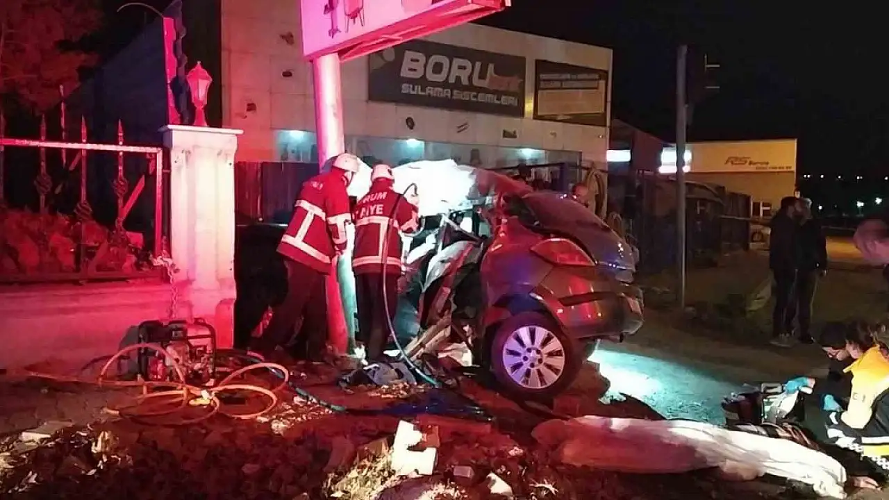 Çorum'da reklam tabelasına çarpan otomobildeki 3 kişi hayatını kaybetti.