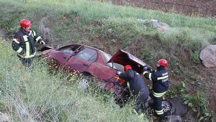 MANİSA'da şarampole yuvarlanan otomobilde sürücü Emir Kabak (34) ile yanındaki babası Rüstem Kabak (61) yaralandı. Hastaneye kaldırılan baba ve oğlunun sağlık durumlarının iyi olduğu bildirildi.