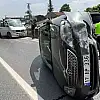 Kocaeli'nin Başiskele ilçesinde kamyonun çarpması neticesinde takla atan otomobil yan durdu.