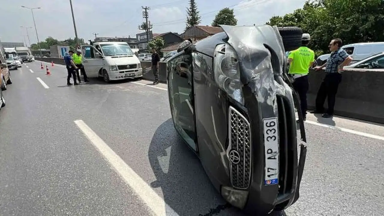 Otomobil takla atıp yan durdu