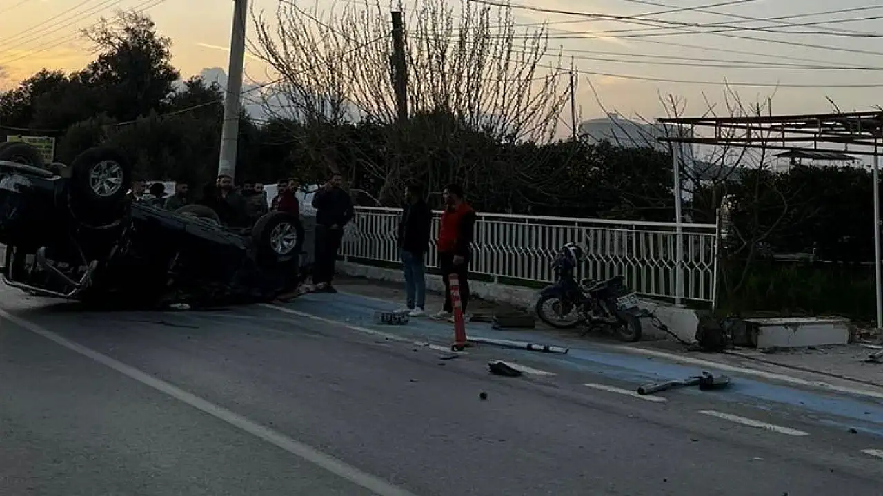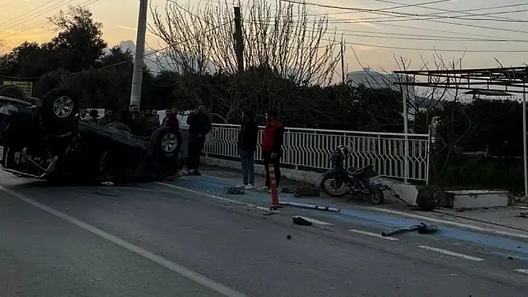 İzmir'in Seferihisar ilçesinde sürücüsünün direksiyon hakimiyetini kaybettiği otomobil, önce aydınlatma direğine ardından ise bir evin kapısına çarparak takla attı.