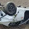 Afyonkarahisar'ın Emirdağ ilçesinde sürücüsünün kontrolünü kaybettiği otomobil takla atarak tarım arazini devrildi.
