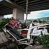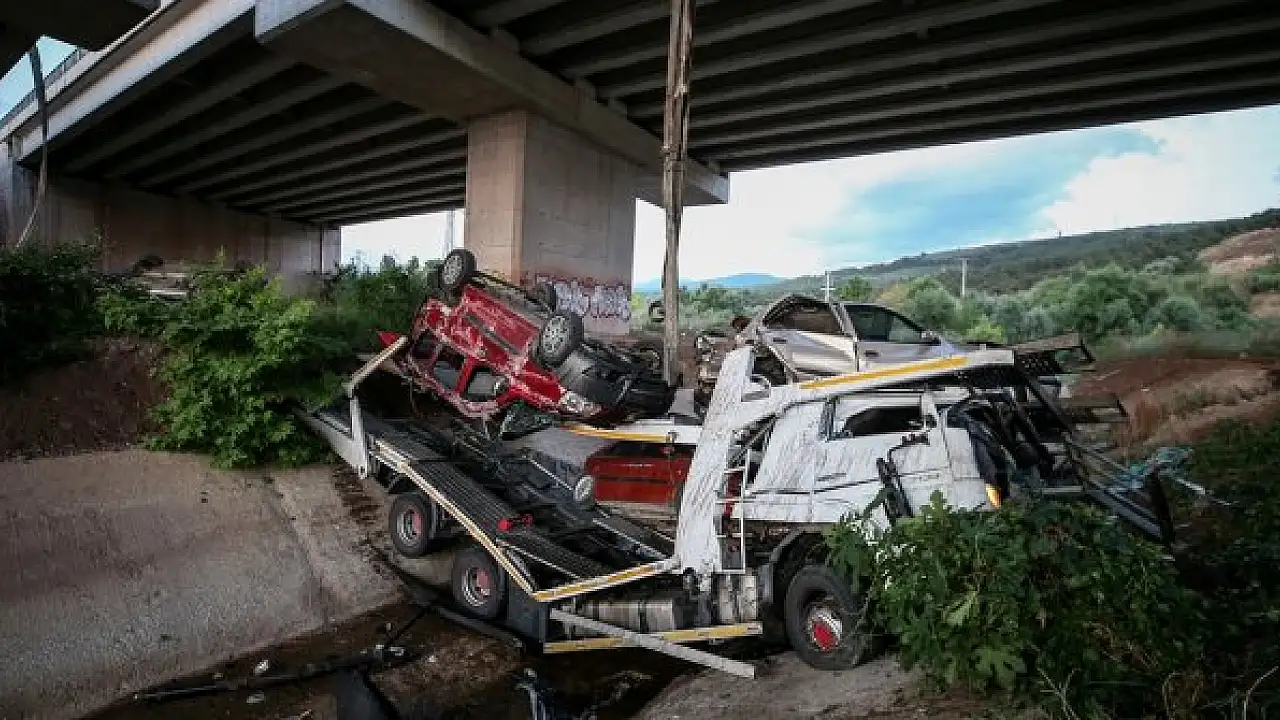 Bursa'da otomobil taşıyan tırın viyadükten düşmesi sonucu 1 kişi yaralandı.