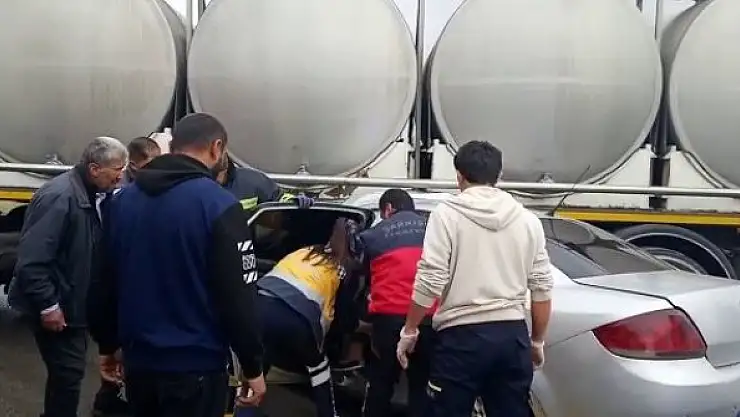 Sivas'ta otomobil tırın dorsesine saplandı kazada otomobilde bulunan 1'i ağır 3 kişi yaralandı.