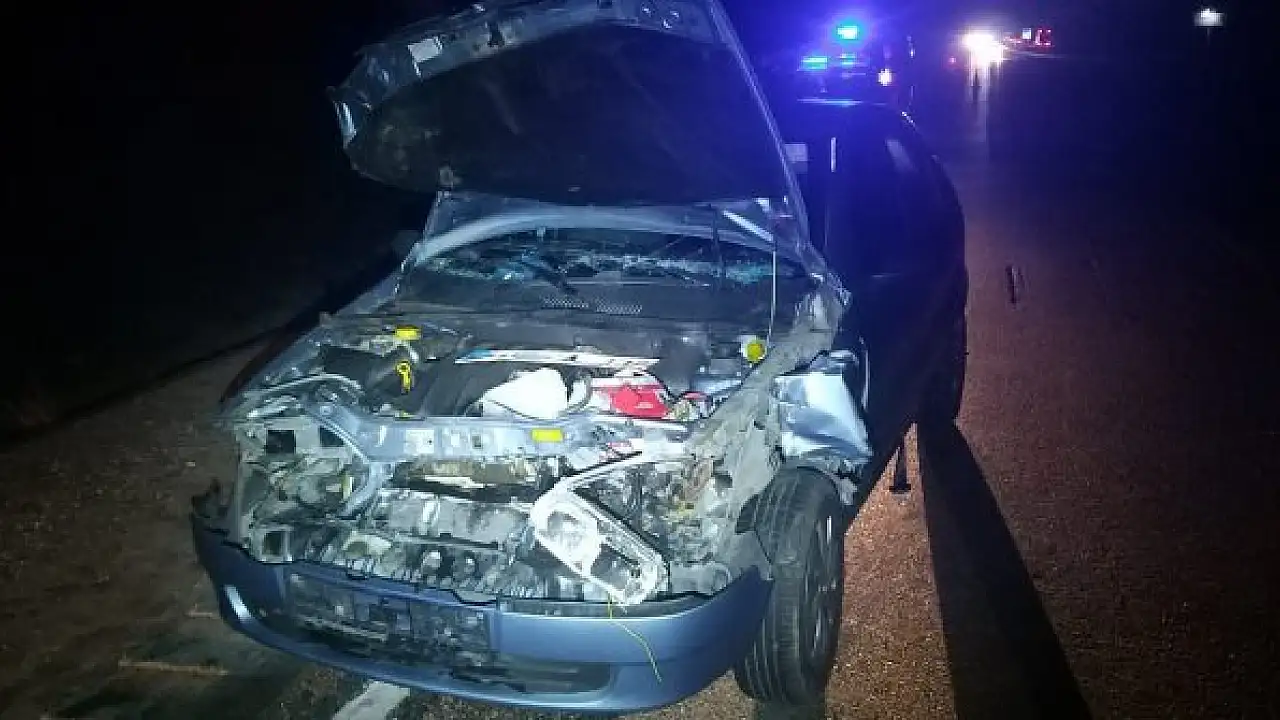 Manisa'nın Kula ilçesinde seyir halindeki otomobil, aynı yönde seyreden tıra arkadan çarptı.