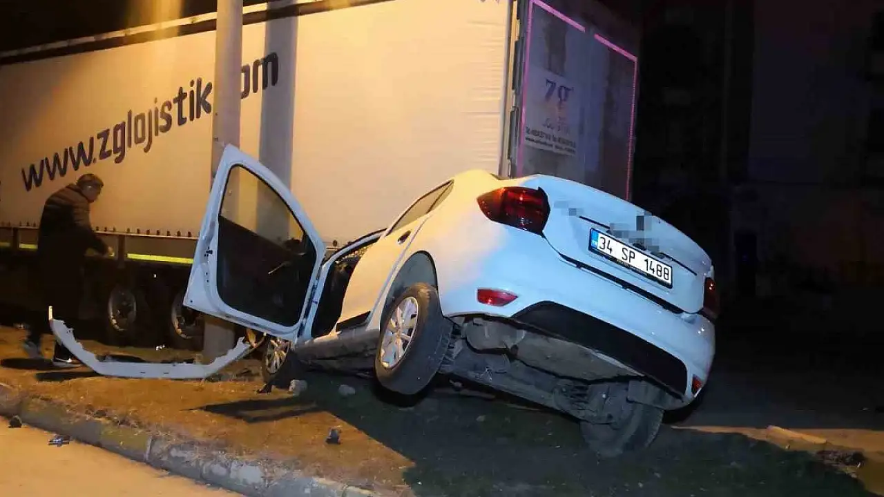 Aksaray'da alkollü sürücünün kullandığı otomobil, sürücüsünün direksiyon hakimiyetini kaybetmesi sonucu önce park halindeki araca, sonra da yine park halindeki tıra arkadan çarparak adeta ok gibi saplandı. Kazada 1'i ağır 2 kişi yaralandı.