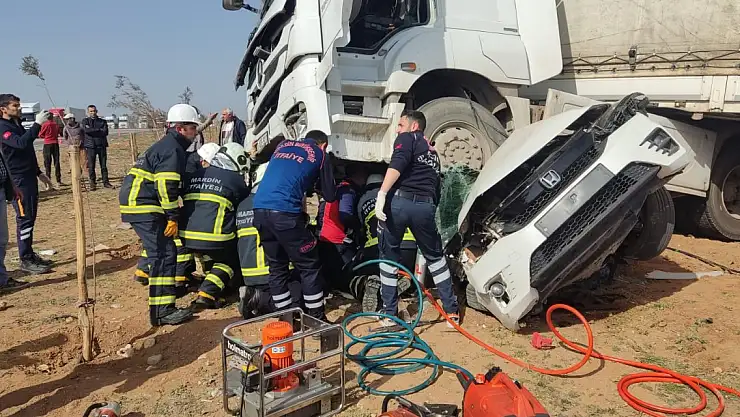 Mardin'de, kavşakta meydana gelen kazada TIR'ın altına giren otomobildeki Hasan Apaki (66) ile Hatice Apaki (62) öldü, Mehtap Apaki (32) yaralandı. TIR sürücüsü Cemil Gerdanoğlu (47) gözaltına alındı.