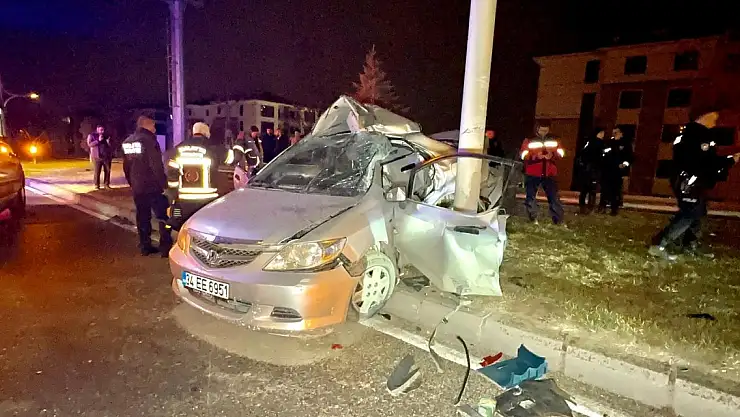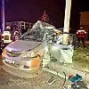 Otomobil trambüs direğine ok gibi saplandı: 1 ölü, 1 yaralı