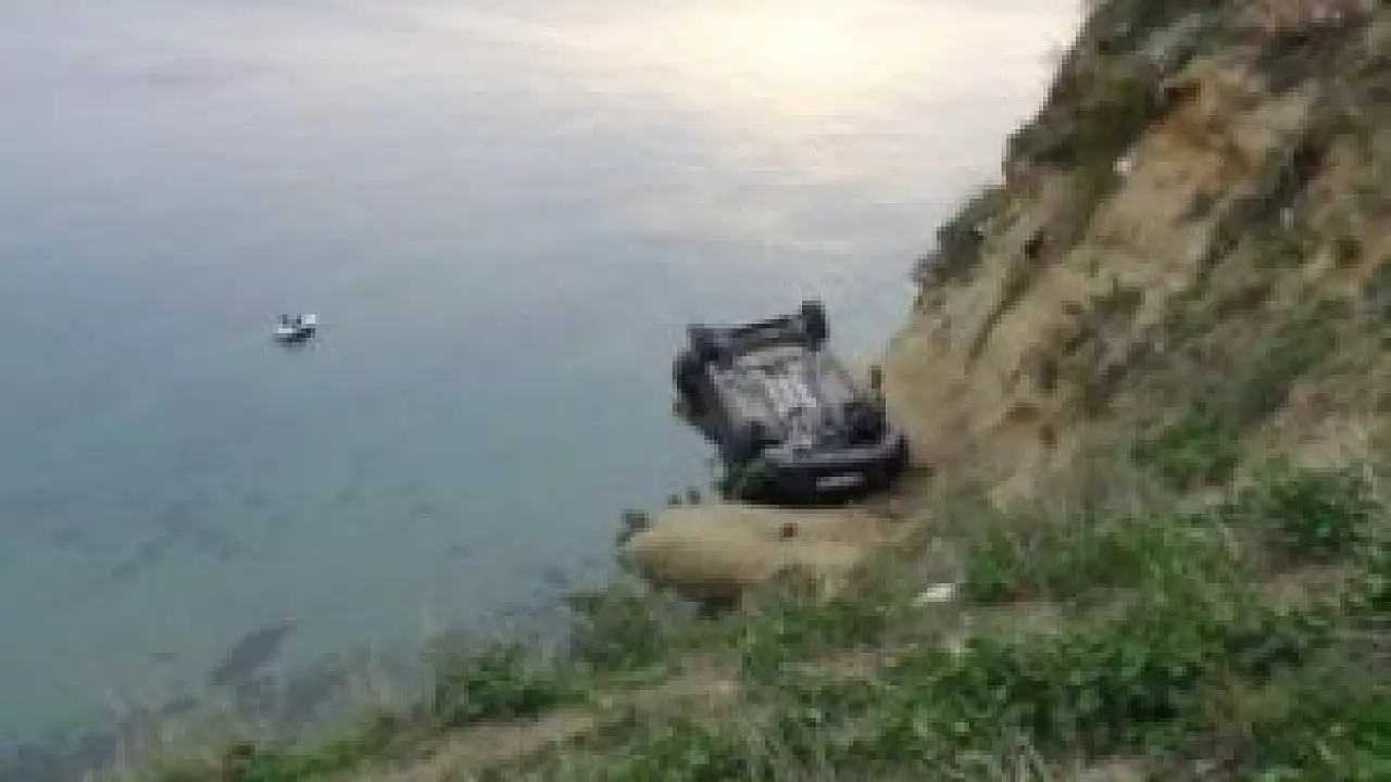 Silivri'de freni boşalarak uçuruma yuvarlanan otomobil, yamaçtaki kayalara takılınca denize düşmekten kıl payı kurtuldu.