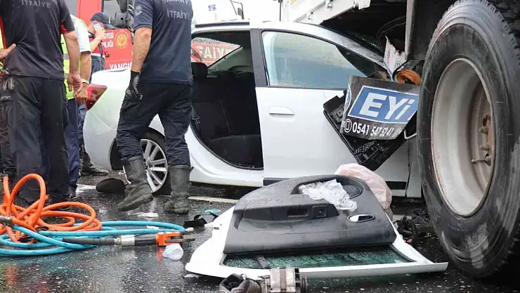 Otomobil, yan dönen kamyona ok gibi saplandı: 1 ölü 4 yaralı