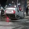 Malatya'da aşırı hız sonucu kaza yapan otomobil bomboş caddesinin ortasında ters döndü, sürücü yara almadan kurtuldu.