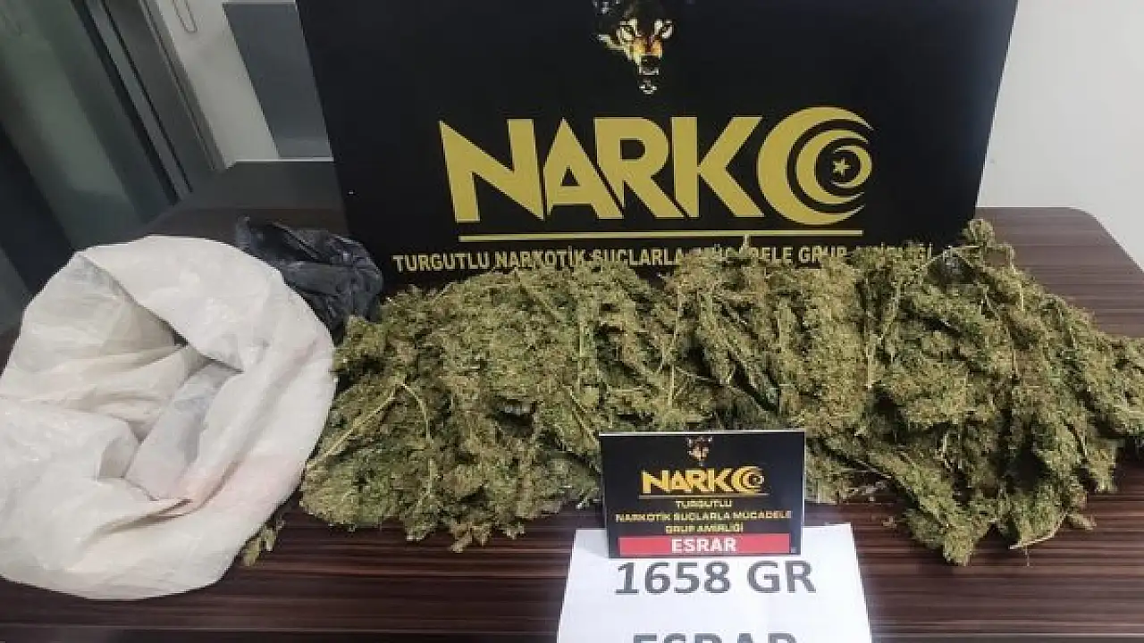 Manisa'nın Turgutlu ilçesinde, otomobilde 1 kilo 658 gram esrar ele geçirildi, iki şüpheli tutuklandı.