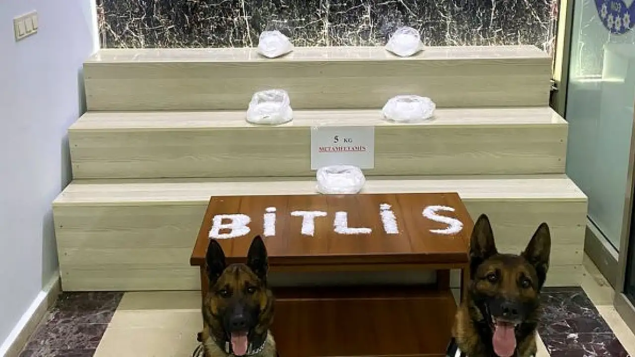 BİTLİS'te, polisin yol kontrollerinde durdurduğu otomobilde, narkotik köpekleri Buffy ve Dark'la yapılan aramada 5 kilo metamfetamin ele geçirildi.