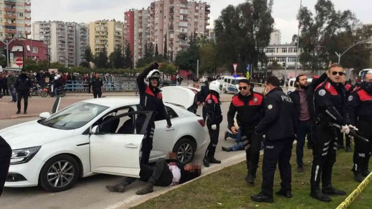 Edinilen bilgiye göre olay, 21 Şubat günü saat 12.30 sıralarında Seyhan ilçesine bağlı Yeşilyurt Mahallesi Mavi Bulvar'da meydana geldi. Polis ekipleri, bir kişinin 34 BSE 159 plakalı otomobile zorla bindirilip kaçırıldığı ihbarı üzerine harekete geçti. Mavi Bulvar'a giren otomobilde bulunanlara polis "dur" ihtarında bulundu. İddiaya göre otomobildeki Abdullah K. ile Adnan A. birbirlerine ateş etti. Bu sırada polis ekipleri de zanlıların durması için havaya ateş etti. Yaralanan iki şüpheli polise de ateş ederek direnmeye çalıştı. Ancak polis film gibi operasyonla yaralı zanlıları daha fazla birbirine zarar vermeden yakaladı. Bacağından yaralanan Abdullah K. Adana Şehir Eğitim ve Araştırma Hastanesi'ne, karnından ve bacağından yaralanan Adnan A. ise Seyhan Devlet Hastanesi'ne kaldırıldı. Hastanedeki tedavisinin ardından taburcu edilen Abdullah K., polis ekiplerince gözaltına alındı. Yapılan çalışmada Adnan A.'nın daha önce yöneticilik yaptığı sitede oturan Abdullah K.'nin aidat borcunu ödemediği, bu nedenle aralarında husumet başladığı ortaya çıktı. Ayrıca Abdullah K.'nin sitede mangal yaktığı, yönetici Adnan A.'nın da uyarması üzerine ikili arasında kavga çıktığı ve tarafların birbirlerinden şikayetçi oldukları öğrenildi. Olay günü ise Abdullah K.'nin Adnan A.'nın otomobilinin arka koltuğuna binip yanında getirdiği pompalı tüfekle "Aracı sür" diyerek tehditte bulunduğu öne sürüldü. Çevredekilerin ihbarı üzerine polisin peşine düştüğü şüphelilerin, bir süre kaçıp daha sonra durduruldukları bildirildi. Emniyete götürülen şüphelilerden Abdullah K.'nin ifadesinde, "Pompalı tüfeği elimden alıp bana ateş etti. Arbede çıkınca ben de silahı alıp Adnan A.'yı yaraladım" dediği öğrenildi.