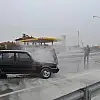 Otomobildeki yangını beton mikseri söndürdü