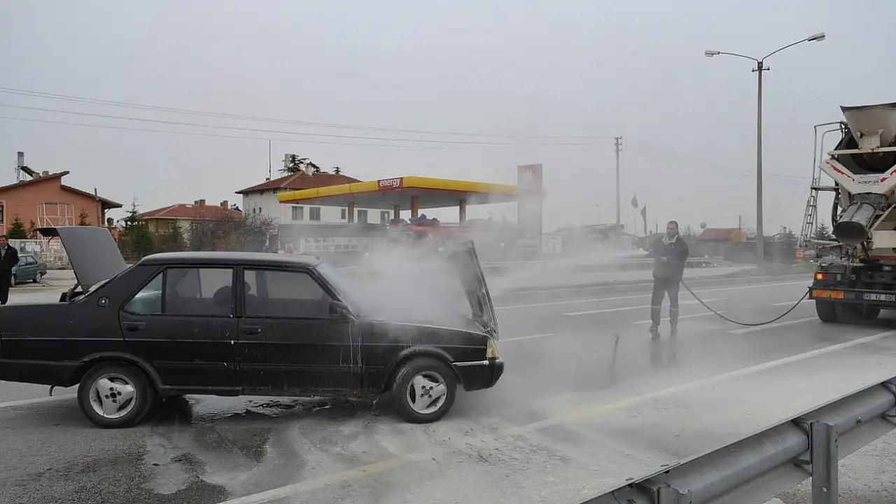 Edinilen bilgiye göre, Mehmet A. idaresindeki 42 M 7481 plakalı otomobil, bir akaryakıt istasyonundan yakıt aldıktan sonra yola çıktı. Seyir halindeyken otomobilin motor kısmından yükselen dumanları gören sürücü Mehmet A., yol kenarına çektiği aracından can havliyle çıktı. Yangın söndürme tüpüyle yangına müdahale eden sürücüye, tesadüfen yoldan geçen beton mikserinin sürücüsünden yardım geldi. Aracını durduran beton mikserinin sürücüsü de uzattığı hortumla su sıkarak yangına müdahale etti. Yapılan soğutma çalışmalarının ardından yangın daha fazla büyümeden söndürüldü.
