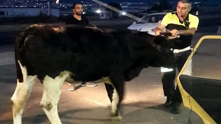 İzmir'in Kemalpaşa ilçesinde polis ekiplerinin kontrol noktasında durdurduğu otomobilden 400 kilogram ağırlığında dana çıktı.