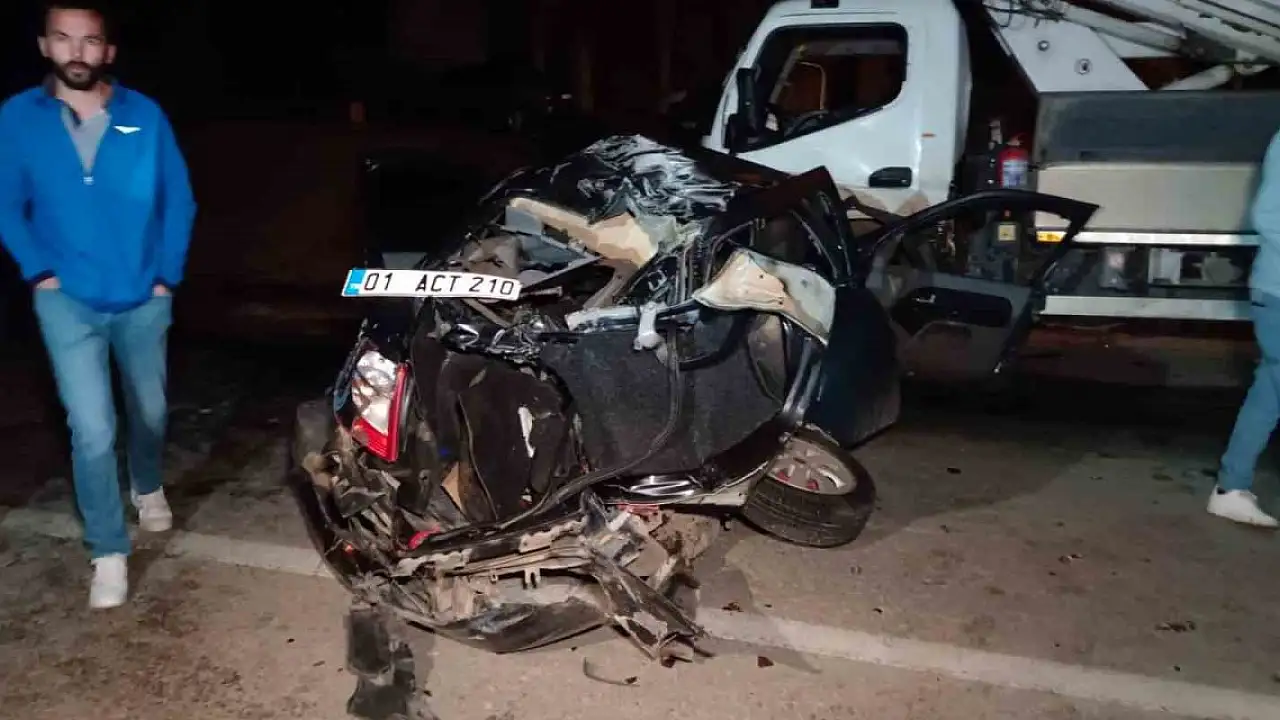 Adana'da orta şeritte durup kontrolsüz dönüş yapmaya otomobile çarpmamak için sürücüsünün manevra yaptığı otomobil, karşı şeride geçerek vinç ile çarpıştı. Kazada otomobilde bulunan 2 genç hayatını kaybederken kaza anı güvenlik kamerasına saniye saniye yansıdı.