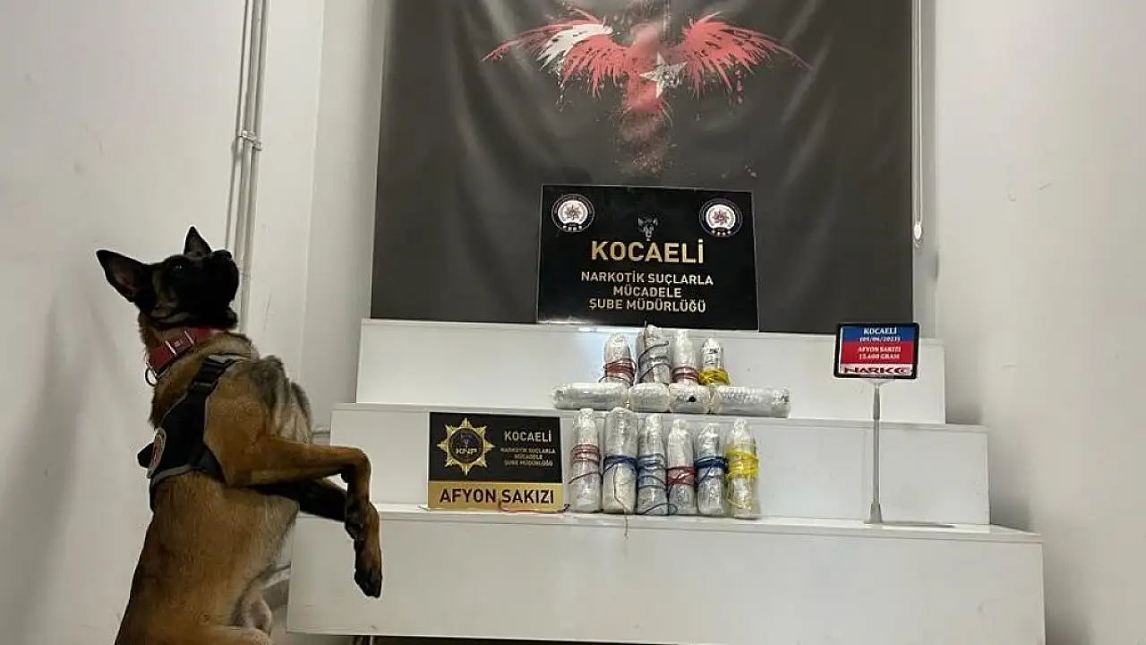 Edinilen bilgiye göre, İl Emniyet Müdürlüğü Narkotik Suçlarla Mücadele Şube Müdürlüğü ekipleri, Kandıra'da durdurdukları otomobilde arama yaptı. Narkotik köpeği ile yapılan aramada aracın marşpiyel kısmına zulalanmış 14 paket halinde 15 kilogram 600 gram afyon sakızı ele geçirdi. Olaya ilişkin 2 şüpheli gözaltına alındı.