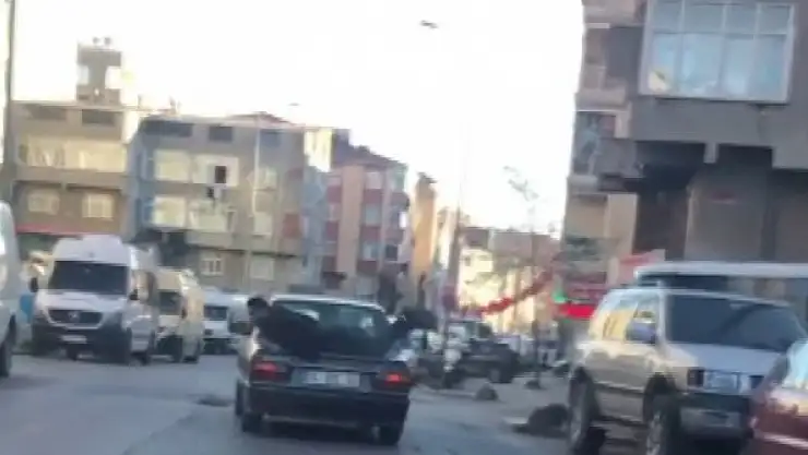 Olay, bugün öğle saatlerinde Bağcılar 100. Yıl Mahallesinde meydana geldi. Esenler istikametinde giden 34 UTL 42 plakalı otomobilin bagaj kapağı üzerinde uzanarak yolculuk yapan bir kişi, arkalarından gelen sürücünün cep telefonu kamerası tarafından kaydedildi. Görüntüyü çeken sürücü ve çevredekilerin şaşkın bakışları arasında tehlikeli yolculuğuna devam eden kişinin neden otomobilin o kısmında yolculuk yaptığı anlaşılamadı.