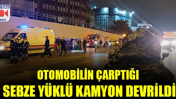 Otomobilin çarptığı sebze yüklü kamyon devrildi: 2 yaralı