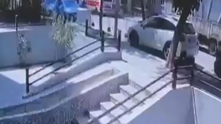 Kaza anı ise çevreki bir iş yerinin güvenlik kamerası tarafından kaydedildi.