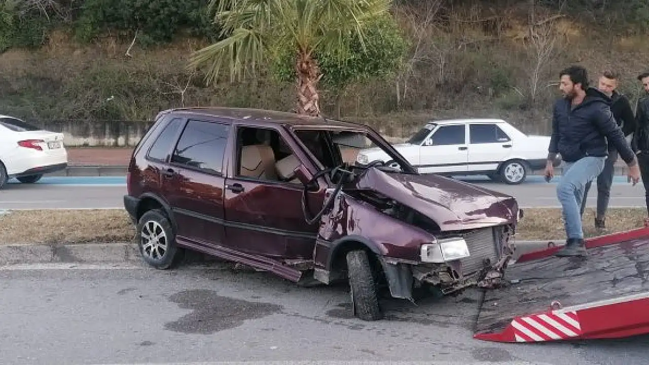Otomobilin palmiye ağacına çarparak durduğu kazada 2 kişi yaralandı