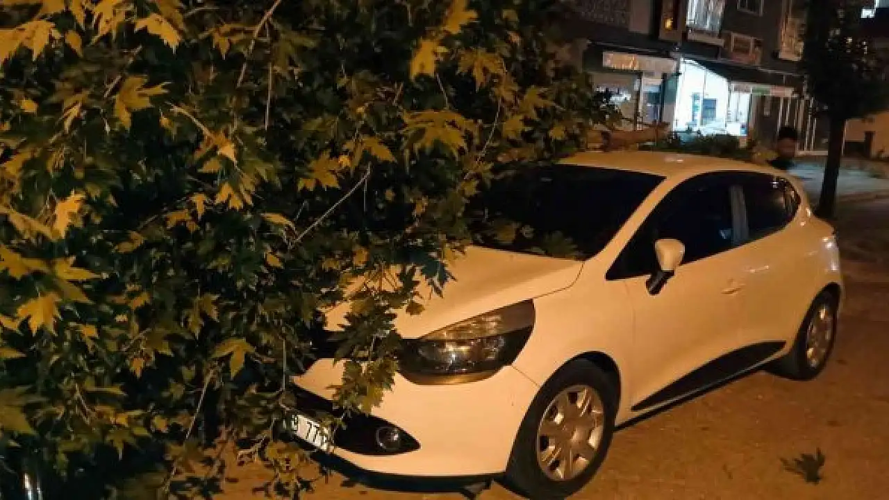 Adıyaman'da rüzgara dayanamayarak kırılan ağaç dalının üzerine düştüğü otomobil zarar gördü.