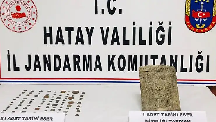 Hatay'ın Antakya ilçesinde, otomobilinde 84 sikke ile taş tablo ele geçirilen şüpheli gözaltına alındı.