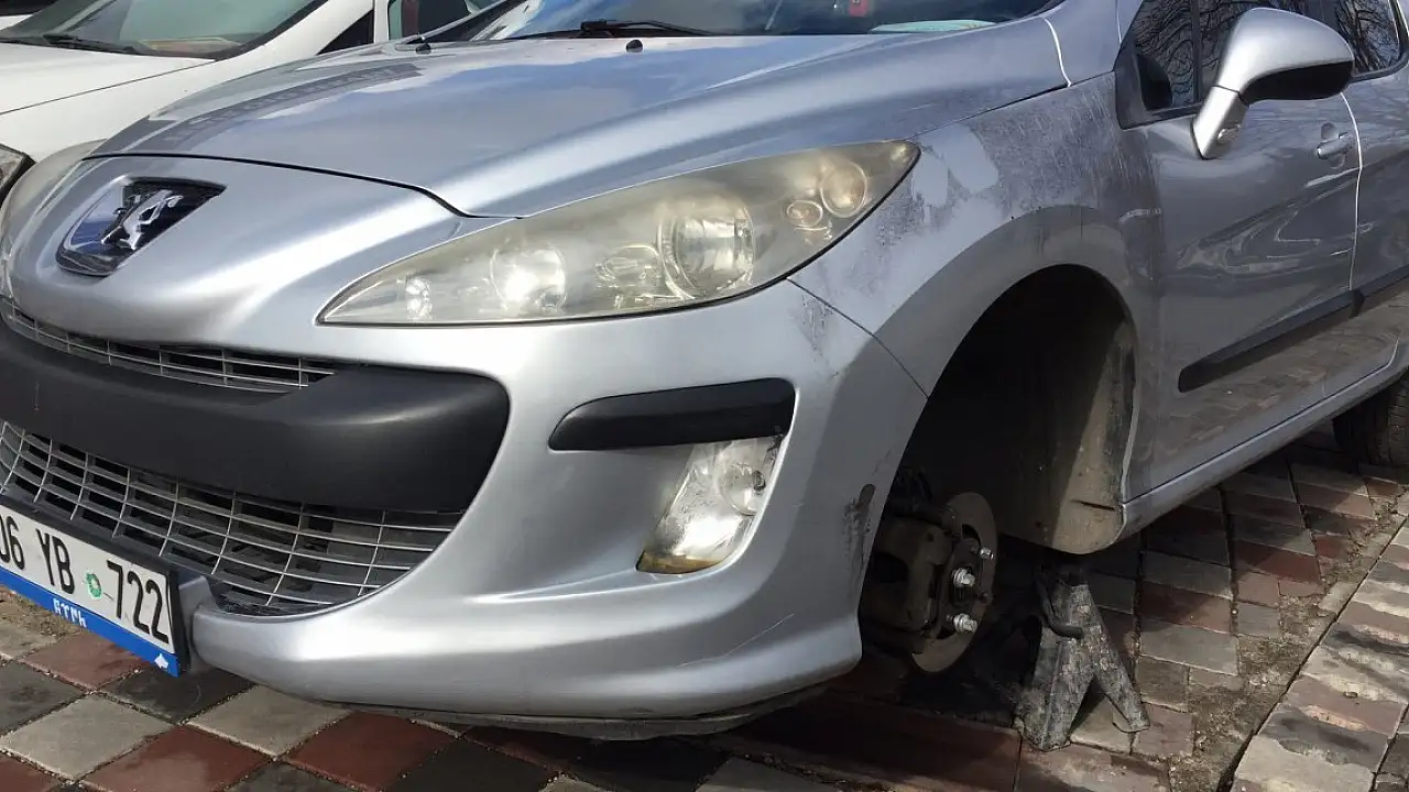 Ankara'da kimliği belirsiz kişi ya da kişiler, park halindeki otomobilin lastiğini çaldı. Araca binip çalıştıran ve otomobil ilerlemeyince lastiklerinin çalındığını fark eden Hasan Zengin (40), "Görünce şoke oldum. 1-2 dakika kendime gelemedim" dedi.
