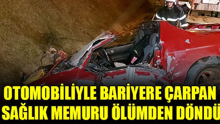 Otomobiliyle bariyere çarpan sağlık memuru ölümden döndü
