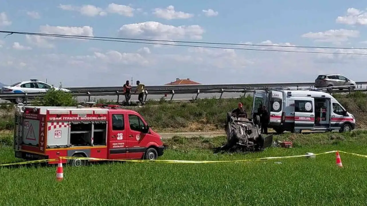 Uşak'ta meydana gelen trafik kazasında yoldan çıkarak takla atan araç sürücüsü kadın hayatını kaybederken yabancı uyruklu kocası kazayı hafif sıyırıklarla atlattı.