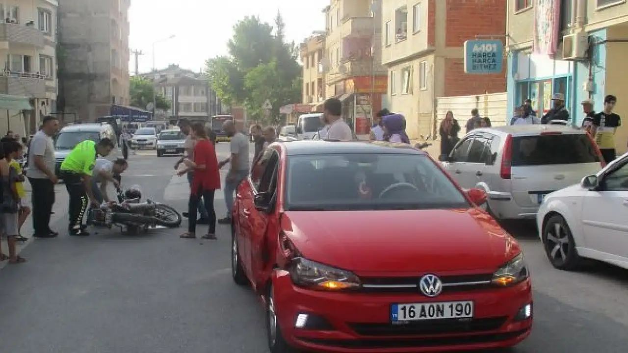 BURSA'nın İnegöl ilçesinde, otomobil ile çarpışan motosiklet sürücüsü Ahmet Elnaif (18), ağır yaralandı.