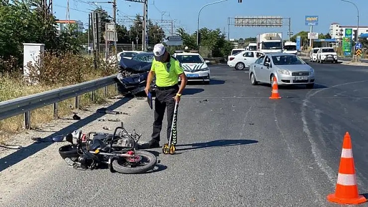 TEKİRDAĞ'ın Ergene ilçesinde, otomobil ile çarpışan motosikletin sürücüsü ağır yaralandı.