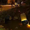 Otomobille çarpışan ticari araç korkulukları parçalayıp kanala uçtu