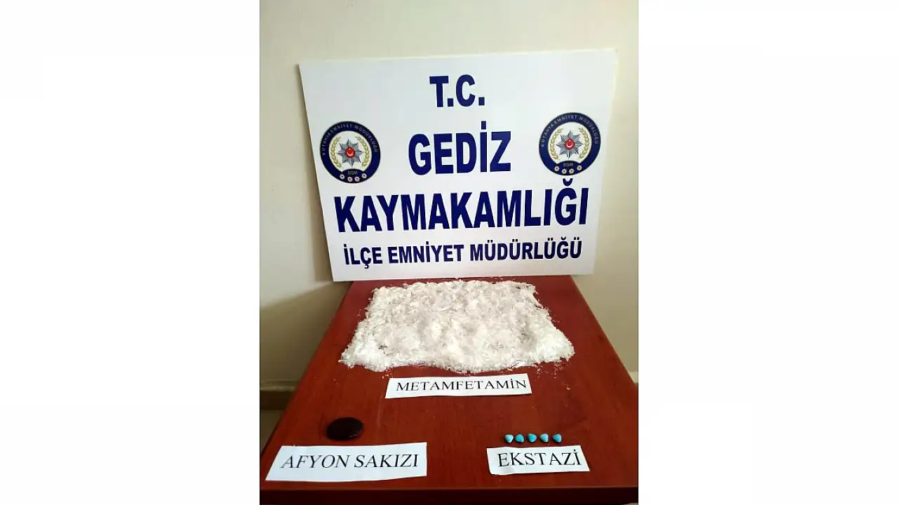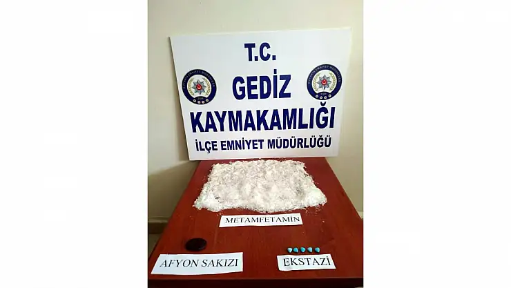 Kütahya İl Emniyet Müdürlüğü Narkotik Suçlarla Mücadele Şube Müdürlüğü ve Gediz İlçe Emniyet Müdürlüğü ekipleri, kent dışından Gediz'e uyuşturucu madde getirileceği bilgisine ulaştı. İlçe girişinde önlem alan polis, şüpheliler N.R. ve F.S.'nin içinde bulunduğu otomobili durdurdu. Otomobilde ve şüphelilerin üzerlerinde yapılan aramalarda; 400,17 gram metamfetamin, 14,28 gram afyon sakızı ve 5 ecstasy ele geçirildi. Gözaltına alınan şüpheliler, İlçe Emniyet Müdürlüğü'ndeki işlemlerinin ardından adliyeye sevk edildi.