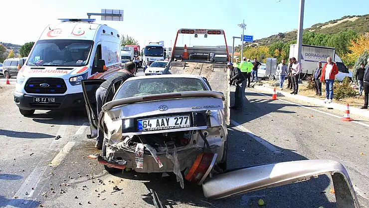 Kaza, saat 12.00 sıralarında, İzmir-Ankara yolu Eşme kavşağında meydana geldi. İzmir'den Uşak yönüne giden Ahmet Şahan'ın (72) kullandığı 66 LB 666 plakalı otomobil, ana yola kontrolsüz çıkmaya çalışan Cemil Çimen (68) yönetimindeki 64 AAY 277 plakalı otomobille çarpıştı. Kazada sürücülerden Ahmet Şahan ve aracındaki Nejdet Kalelioğlu (59) ile diğer sürücü Cemil Çimen ve yanındaki Enginar Çimen (59) yaralandı. Çevredekilerin ihbarıyla kaza yerine çok sayıda sağlık, itfaiye, jandarma ve polis ekibi sevk edildi. İlk müdahaleleri yapılan yaralılar, ambulanslarla Kula Devlet Hastanesi'ne kaldırıldı. Tedaviye alınan yaralılardan sağlık durumu ağır olan Nejdet Kalelioğlu, ileri tetkik ve tedavisi için Salihli Devlet Hastanesi'ne sevk edildi. Kaza nedeniyle İzmir-Ankara yolunun Uşak yönü, trafiğe kapandı. Kazaya karışan araçların yoldan kaldırılmasının ardından ulaşım, bir süre ekipler tarafından kontrollü olarak sağlanıp, yeniden açıldı. Kaza ile ilgili soruşturma başlatıldı.