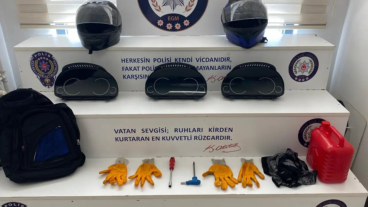 KOCAELİ'nin çeşitli ilçelerinde 9 lüks otomobilin hayalet ekranlarını çalan motosikletli 2 hırsız, polis tarafından suçüstü yakalandı.