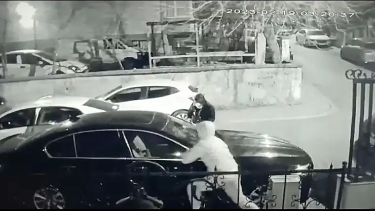 Öte yandan, hırsızlık anı güvenlik kamerasına yansıdı. Görüntülerde, otomobille sokağa giren şüphelilerin park halindeki araçların dikiz aynalarını çalarak uzaklaştıkları görülüyor.
