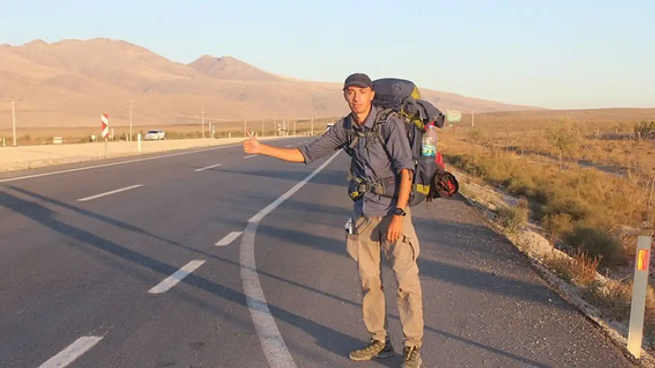 Otostopla Dünya turuna çıkan Fransız turist Karapınar'da