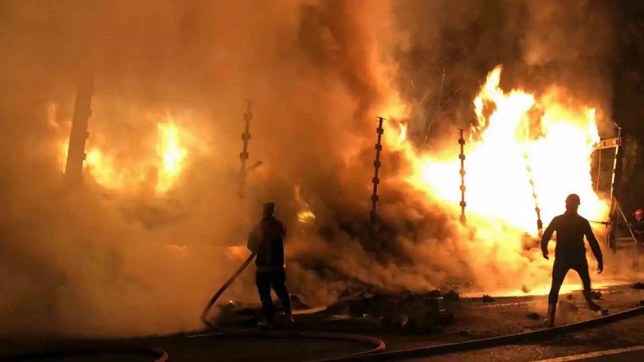 Otoyolda korkutan yangın: İplik yüklü tırın dorsesi küle döndü