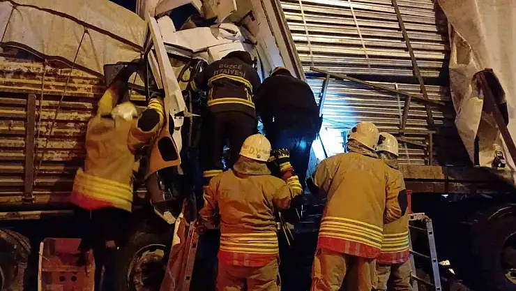 Anadolu Otoyolu Düzce gişelerinde meydana gelen trafik kazasında, seyir halindeki tıra bir başka tır arkadan çarptı. Kazada hurdaya dönen tırın kupasında sıkışan sürücü öldü.