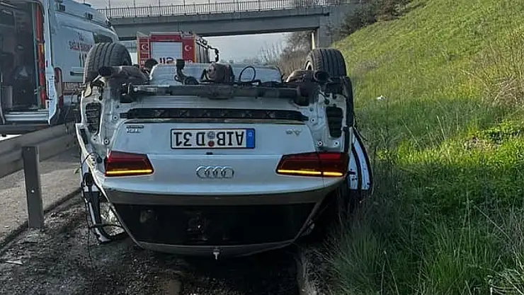 Otoyolda takla attı, yoldan çıktı