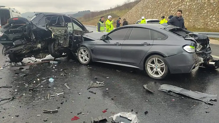 Bursa'da yağış nedeniyle kayganlaşan otoyolda, 4 otomobilin karıştığı zincirleme kazada 4 kişi hayatını kaybetti, 7 kişi yaralandı.